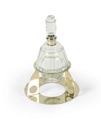 CUT GLASS BOTTLE ON STAND, CIRCA 1910