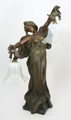 ART NOUVEAU PATINATED SPELTER TABLE LAMP, CIRCA 1900