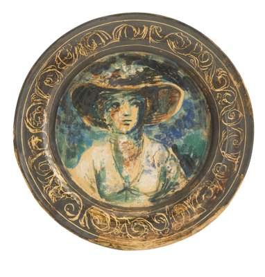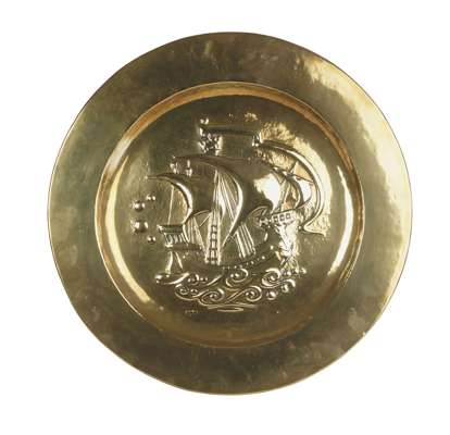 CIRCULAR BRASS CHARGER, CIRCA 1910