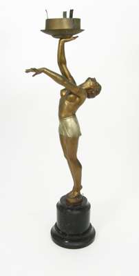 PATINATED SPELTER FIGURAL LAMP, 1920S
