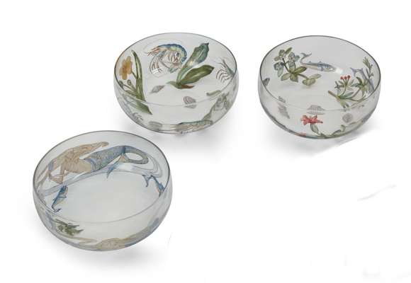 THREE GLASS FINGER BOWLS, CIRCA 1910