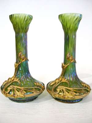 PAIR OF IRIDESCENT GLASS VASES, CIRCA 1920