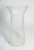 clear glass, the flaring neck above a ribbed tapering cylindrical body