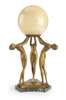 cast as three scantily clad girls, holding aloft a spherical glass shade and raised on a concave green marble plinth