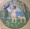 watercolour, circular, stuck down, inscribed in pencil to the reverse 'West Nursery Paper (or Poster) 1899 E.M. Rope'