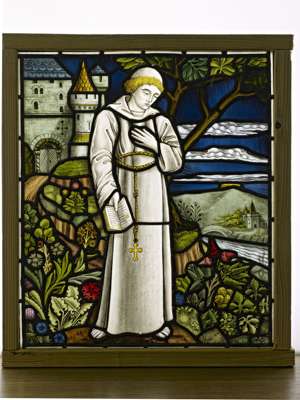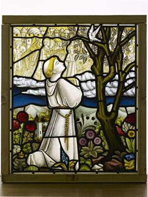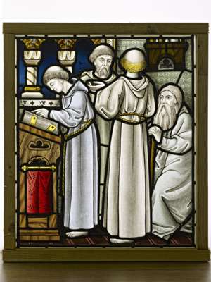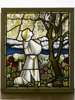 GROUP OF THREE STAINED, PAINTED AND LEADED GLASS PANELS, CIRCA 1910