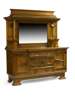 possibly HARRIS LEBUS, the heavily moulded cornice above a mirrored back flanked by brass inlaid panels and turned columns, the base with two central drawers and two small doors with decorative hinges flanked by two further panelled doors on bracket feet