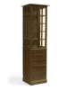 of tall square section, the projecting cornice above astragal-glazed sides with twin doors, enclosing glass shelves for cakes, the base with cupboard doors