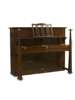 with overstrung iron frame no. 38598, the case with decorative fretwork panel enclosed by candlestands above a hinged lid with decorative brass hinges