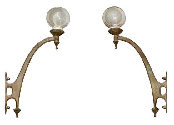 each with pierced and chamfered bracket supporting a glass orb (2)