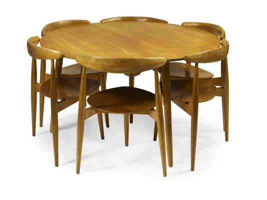 teak, model FH-4103, comprising a circular dining table, 120cm diameter, 70cm high; and six matching chairs, maker's marks (7)