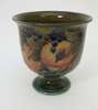 of cylindrical form with everted rim, decorated in the 'Pomegranate' pattern on a mottled green ground, impressed mark '266', William Moorcroft signature in green (restored, hairline)