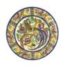 centrally painted with a pheasant perched on a fruiting branch of pomegranates and foliage, printed and painted marks (star crack)