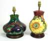 both of baluster form, one decorated with 'Finches' pattern, the other decorated with sunflowers, fitted for electricity and raised on a wooden plinth (2)