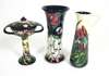 impressed and painted marks, 23.5cm high; and A RACHEL BISHOP FOR MOORCROFT 'A TRIBUTE TO C.R. MACKINTOSH' WAISTED VASE, 2004, impressed and painted marks, 25cm high; and A MOORCROFT 'SYMPHONY' BONBONNIERE AND COVER, BY EMMA BOSSONS, DATED 2003, printed and painted marks, 23cm high (3)