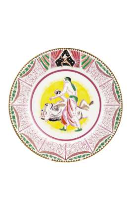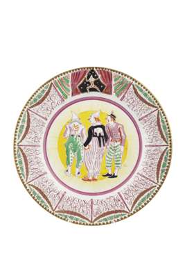 Note: In 1934, Harrods organised an exhibition called 'Modern Art for the Table', featuring ceramics and glass designed by leading artists of the day, including Paul Nash, Graham Sutherland, Eric Ravilious and Dame Laura Knight. Their creations, which consisted of hand-painted designs for pottery, and cut and engraved patterns on glass, were produced by leading tableware manufacturers such Clarice Cliff (A J Wilkinson's Ltd, and their subsidiary Newport Pottery) and Stuart Crystal.