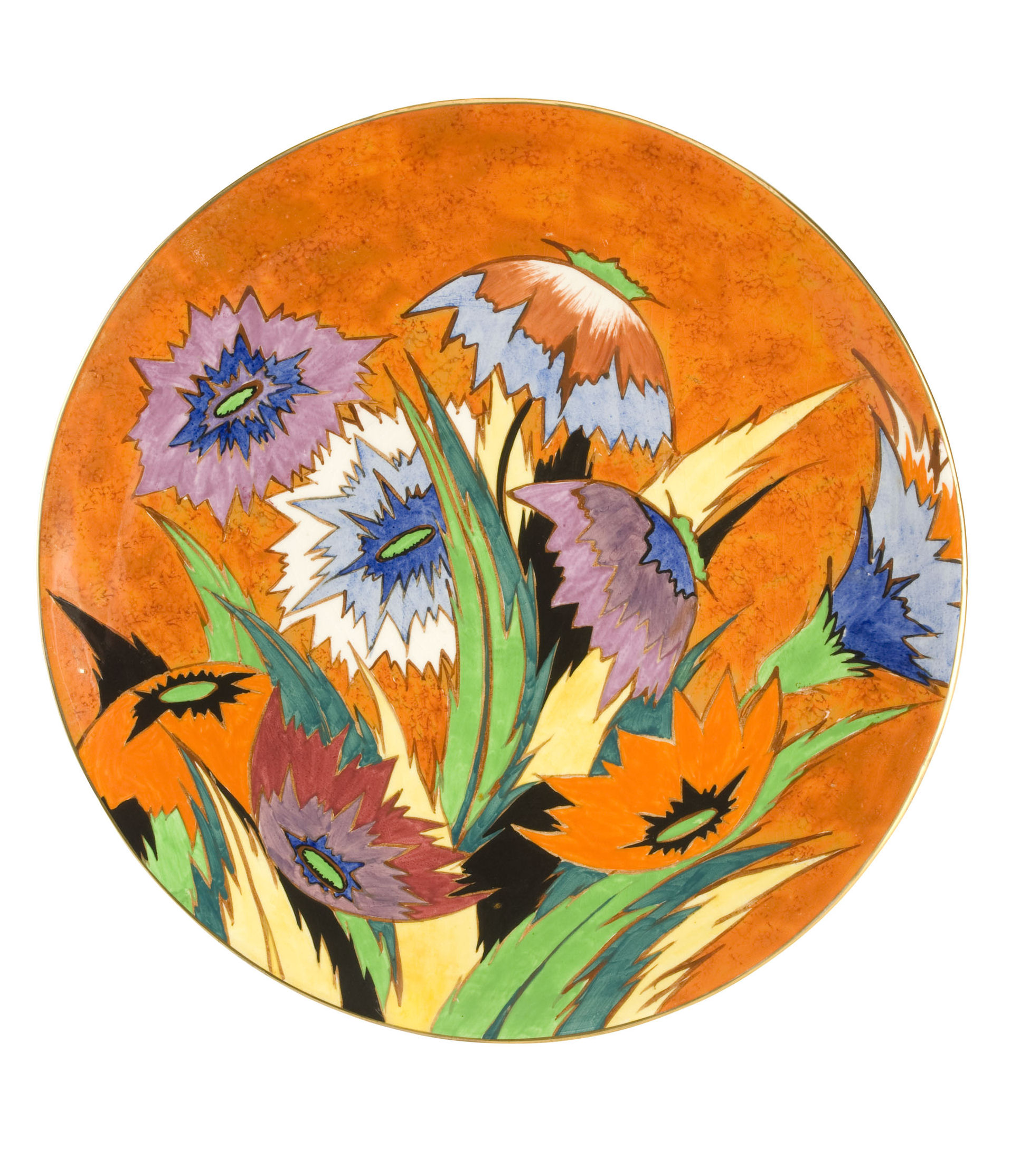 painted and glazed earthenware, decorated in the 'Handcraft Anemone' pattern on an orange lustre ground, printed and painted marks, no. 3694