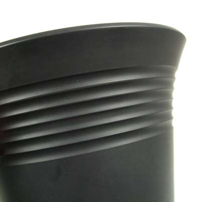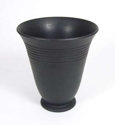 of tapered form with everted rim, the rim with impressed bands, printed and impressed marks