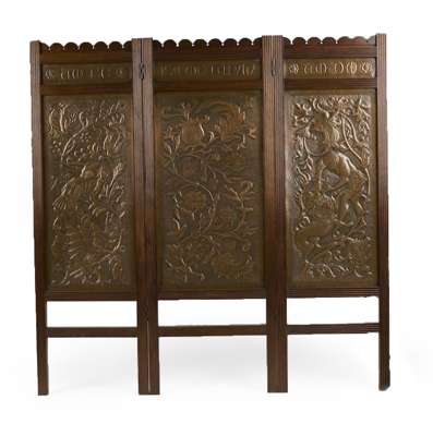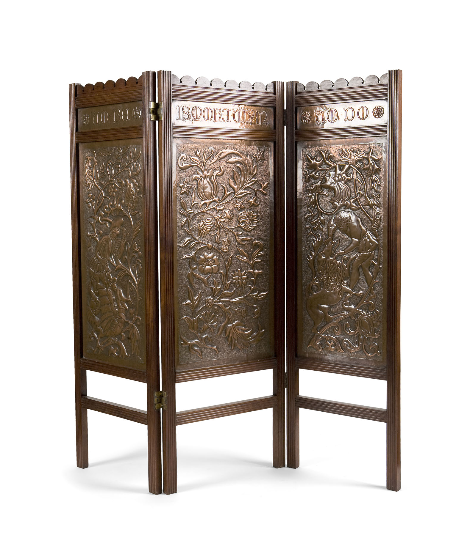 THREE FOLD COPPER FIRE SCREEN, CIRCA 1895