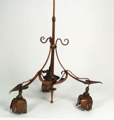 ARTS & CRAFTS COPPER AND BRASS CEILING LIGHT, CIRCA 1900