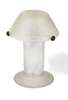 with frosted glass tapering shade, acid etched with stylised plant forms and raised on corresponding cylindrical column with spreading base, moulded mark to base 'Daum, Nancy, France', fitted for electricity