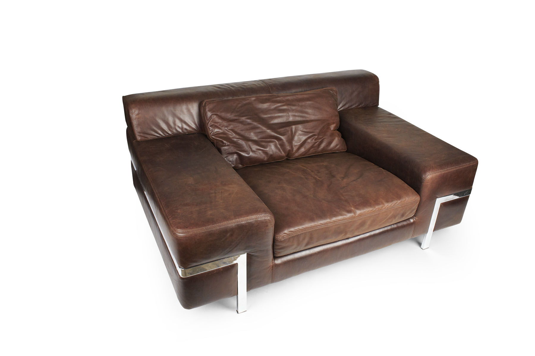 LEATHER SOFA AND COMPANION ARMCHAIR