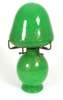 the mushroom shade with green mottled glass with aventurine inclusions raised above a corresponding slender ovoid base