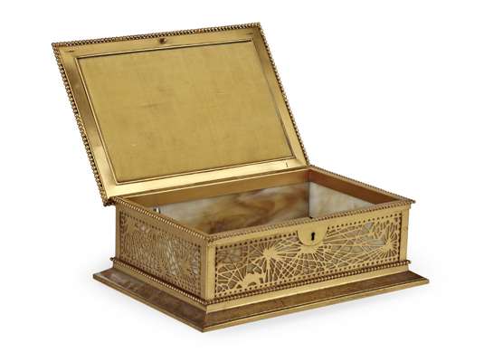 gilt metal with Favrile glass panels, stamped marks 'Tiffany Studios/ New York/ 830'