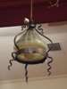 silvered metal, the tapered Vaseline glass shade supported by a circular band with three wavy brackets