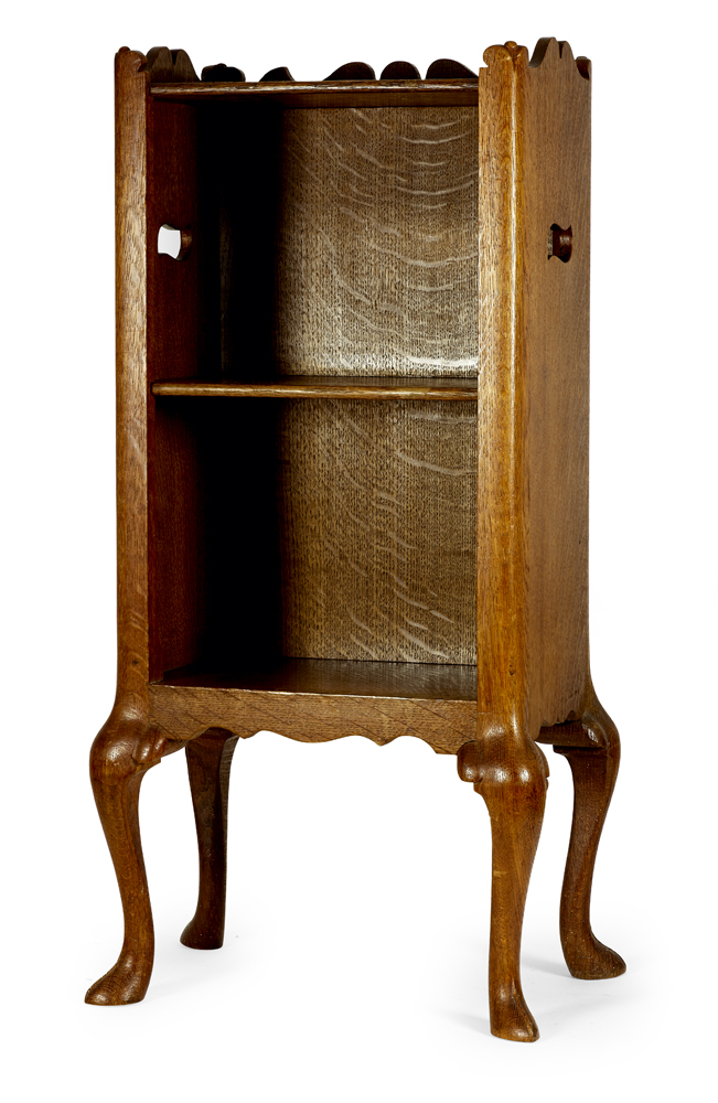 made by Whytock & Reid, Edinburgh, the serpentine three quarter pierced gallery above two open shelves raised on cabriole legs terminating in pointed pad feet