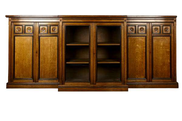 OAK BREAKFRONT LOW BOOKCASE, CIRCA 1890