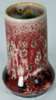a small footed vase of compressed globe and shaft form with tapered neck and flared rim, with mottled sang de boeuf and deep lilac glaze over a cream background, with oxidised moss green spotting, impressed with factory marks and date, 'Ruskin/England/1933'