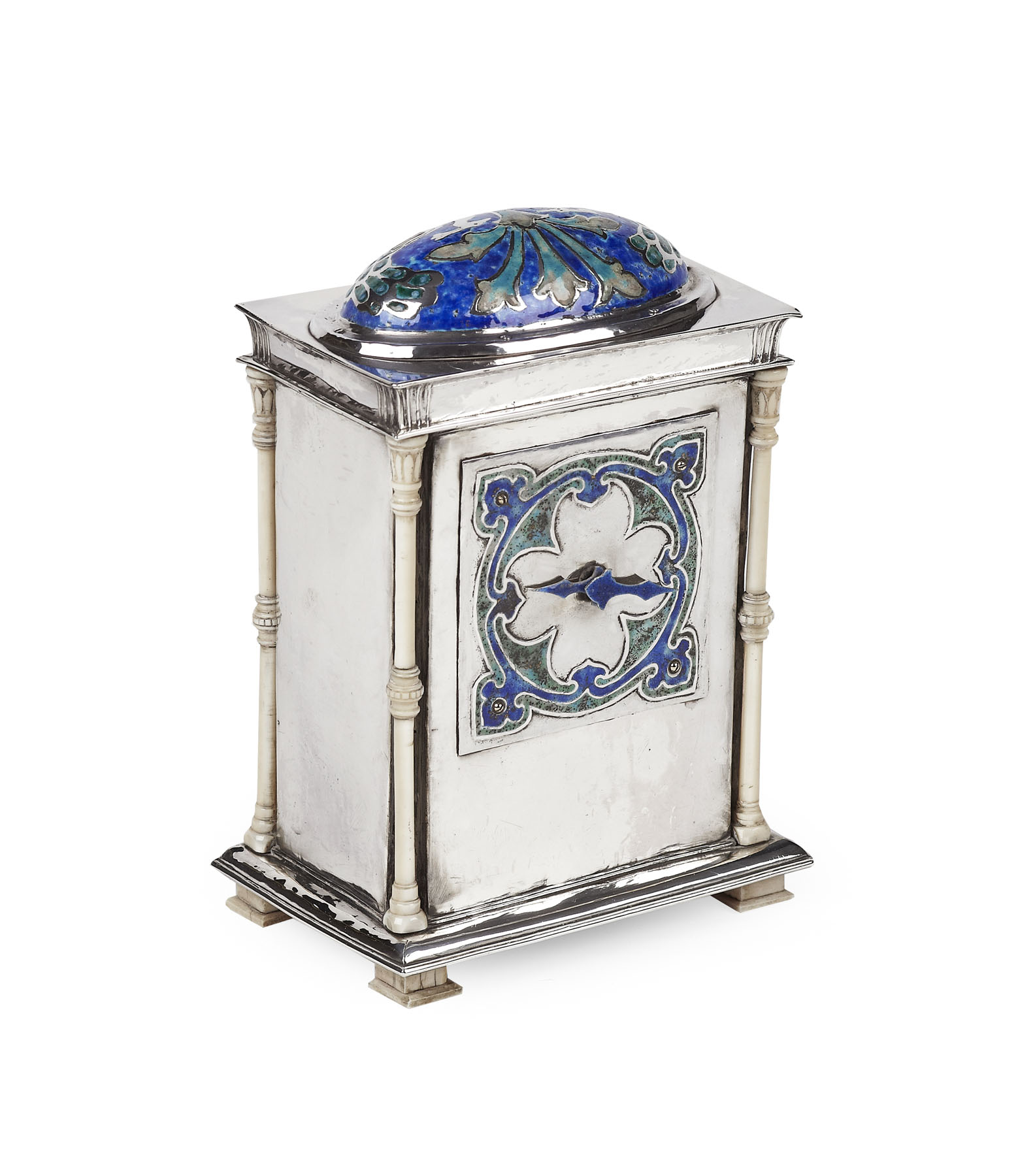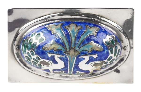 ARTS & CRAFTS SILVER AND ENAMEL MANTEL CLOCK, CIRCA 1900