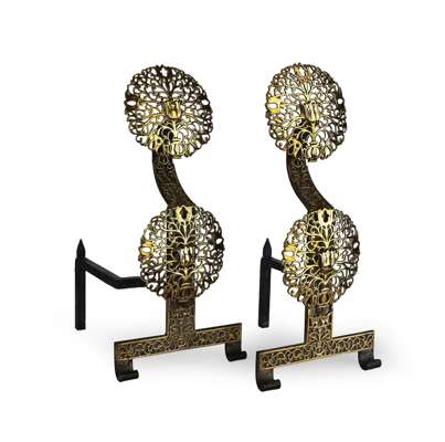 PAIR OF BRASS AND CAST IRON FIRE DOGS, CIRCA 1920
