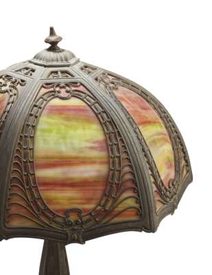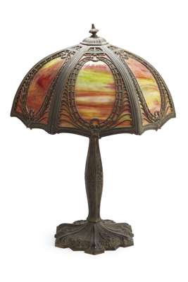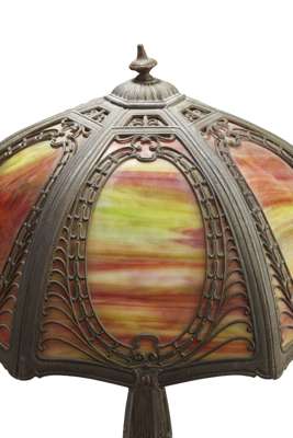 CAST IRON AND SLAG GLASS TABLE LAMP, CIRCA 1900