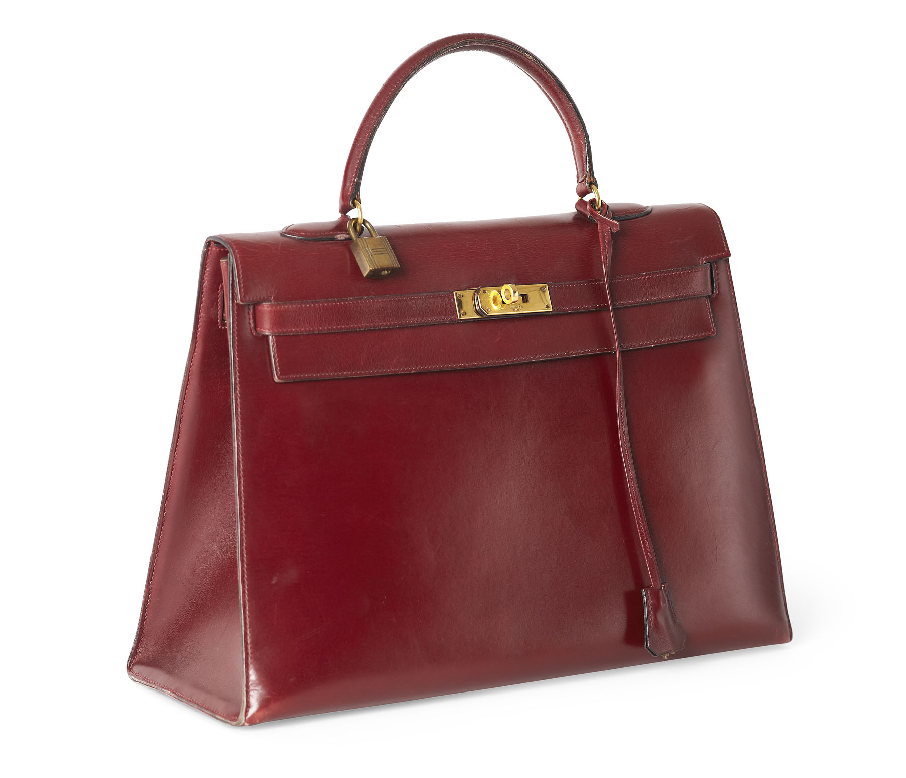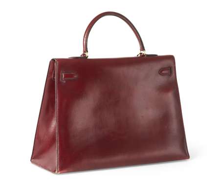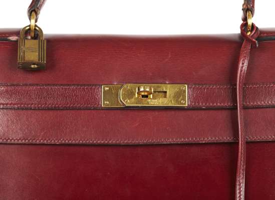 BURGUNDY LEATHER KELLY BAG, 1960S