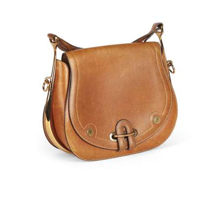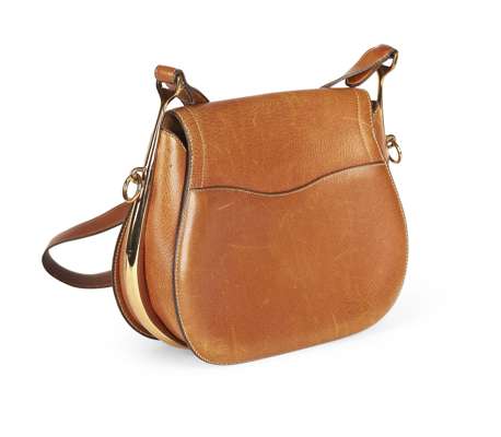 'PASSE GUIDE' TAN LEATHER HORSEBIT BAG, 1970S