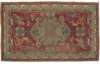 each machine woven wool with Celtic knot centre and borders enclosing a stag hunting scene with figures, in colours on a red field (worn areas) (3)