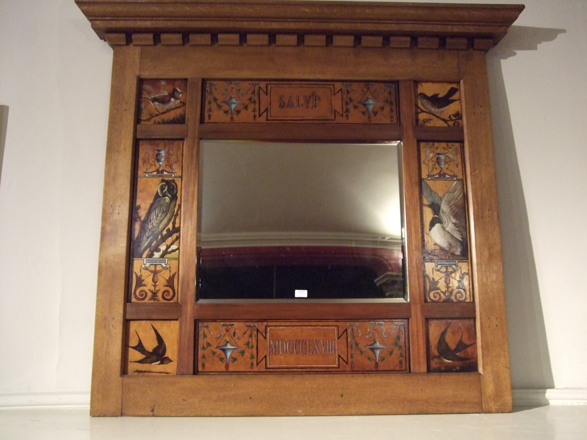 OAK HANDPAINTED MANTEL MIRROR, DATED 1877