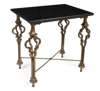 the rectangular black marble top raised on base with openwork baluster legs, linked by cross stretchers