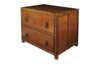 with moulded angles, the rectangular top above two long drawers, each with wrought iron drop handles, the sides and back with fielded panelling (one panel lacking to rear), the whole raised on block feet