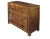 with moulded angles and pegged construction, the rectangular top above two short over two long drawers, each with wrought iron drop handles, the sides and back with fielded panelling, the whole raised on block feet