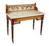 the splashback inset with Aesop's Fables tiles designed by John Moyr Smith, the marble top raised on ring turned legs with spindle brackets