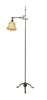 with central column on tripod base, supporting an adjustable scrolling bracket with light fitting
