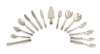 comprising: eight dinner knives; eight dinner forks; eight lunch knives; eight lunch forks; eight fish knives; eight fish forks; eight butter spreaders; eight cake forks; eight teaspoons; eight dessert spoons; eight ice cream spoons; eight grapefruit spoons; eight side knives; a pair of salad servers; and a cake slice, each with marks for 1933-1977, 111oz weighable silver (107)