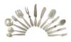 comprising: twelve teaspoons; nine coffee spoons; six pickle forks, various sizes; seventeen dinner forks; eight cake forks; twelve dessert forks; sixteen soup spoons; fourteen dessert spoons; pair of fish servers; nine dinner knives; fish divider; carving knife and fork; bottle opener; serving spoon; pair of salad servers; ice cream server; cake slice; sauce ladle; four various small serving spoons; cheese knife; four side knives; dessert knife, 147oz weighable silver (125)