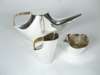 comprising a tea pot with hinged cover, milk jug and rare sugar bowl, with wrapped handles, stamped maker's marks, 'Gallia, Prod. Christofle' (3)