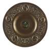 with central inset Ruskin roundel, surrounded by a broad rim, repoussé decorated with entwined Celtic straps and bosses, stamped monogram 'MG'