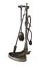 comprising a pair of coal tongs; an ash brush; and a poker, all supported on a stand with dished tray (4)
