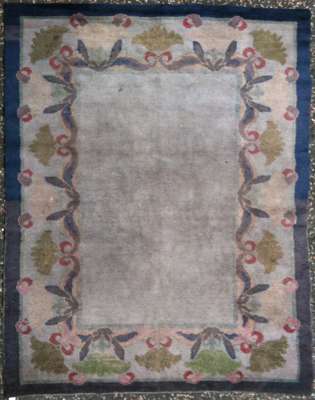 matching the previous lot, the plain blue field with stylised floral and foliate border